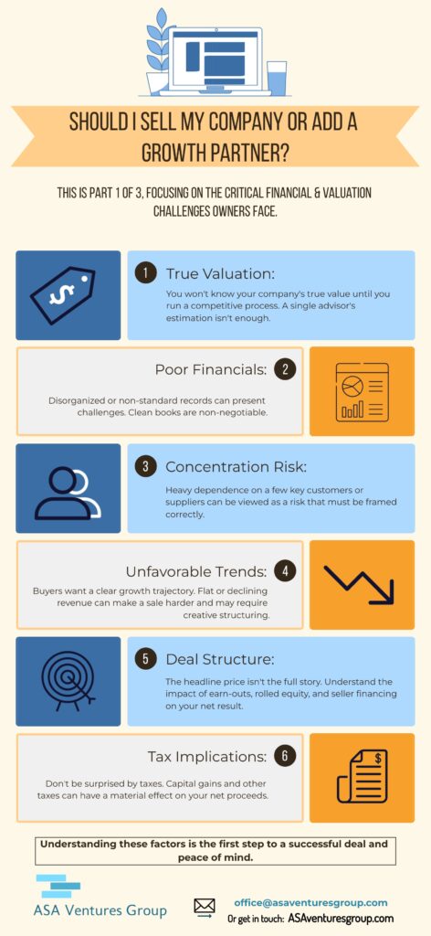 - Unfavorable Financial Trends: A business with flat or declining revenue and profit margins, even if it is currently profitable, can be harder sell. Buyers want to see a clear growth trajectory. Sometimes creative structuring is necessary to achieve the seller’s goals.
